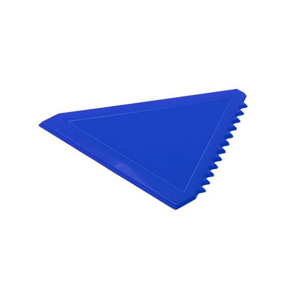 Raschietto per ghiaccio dal design compatto. Un bordo seghettato e due piatti.