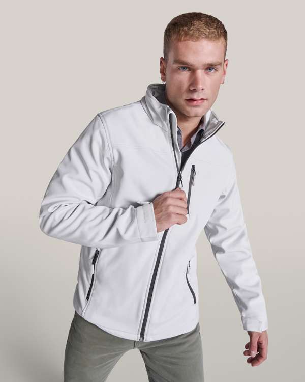 Softshell doppio strato.Cerniera invertita, effetto sigillato, con protezione del mento e tiretto.Cucitura sul petto (solo modello maschile)Tre taschini esterne con cerniera e tiretto.Regolatori sul polso con velcro.Girovita con regolatori laterali interni.