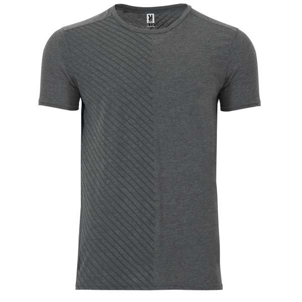 T-shirt manica corta. Girocollo con cuciture coperte in tinta. Stampa laterale parziale nella parte frontale e sulla schiena. Pannelli nella zona delle spalle.