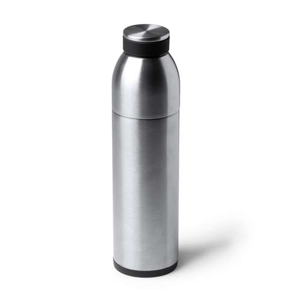 Bottiglia termica 2 in 1. Doppia parete con tazza in acciaio inossidabile 304. Capacità della bottiglia 650 ml, capacità della tazza 500 ml. Confezione in scatola.