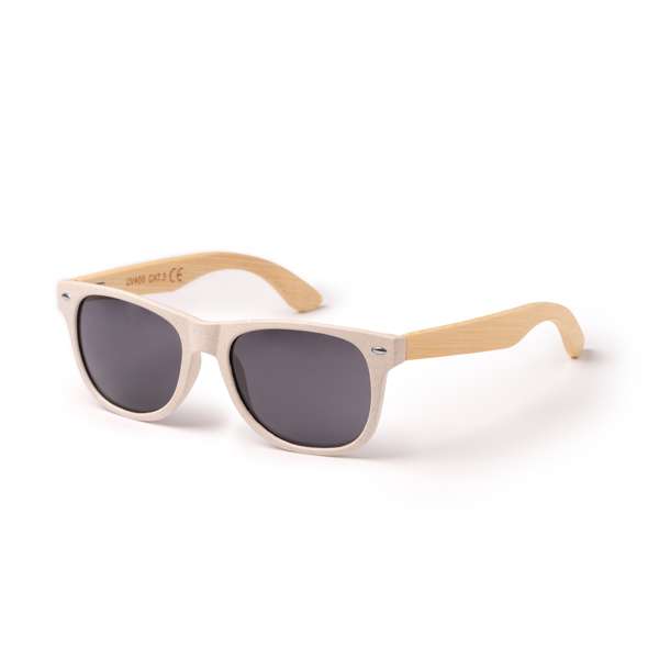 Occhiali da sole con montatura in fibra di grano e aste in bambù. Lenti con protezione UV400.