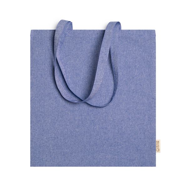 Shopper in 100% cotone riciclato da 120 g/m² con finitura marmorizzata con manici lunghi 70 cm.