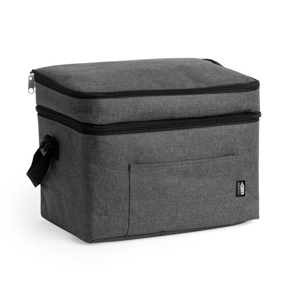 Il frigorifero multiuso realizzato in RPET 600D è la soluzione ideale per mantenere freschi cibi e bevande anche in viaggio. Realizzato in RPET, un materiale riciclato di alta qualità, questo frigorifero dimostra il vostro impegno nei confronti dell'ambiente.Grazie agli scomparti interni isolati, potrete mantenere gli alimenti alla giusta temperatura più a lungo. Se avete bisogno di mantenere le bevande fredde in una giornata calda o di trasportare alimenti freschi, questo frigorifero assicura che tutto rimanga fresco e pronto da gustare.Le pratiche tasche esterne offrono ulteriore spazio per riporre gli oggetti personali, come utensili, tovaglioli o piccoli snack. In questo modo, avrete tutto ciò che vi serve a portata di mano.La tracolla imbottita regolabile con moschettone offre comfort e versatilità nel trasporto del frigorifero. Potete portarlo comodamente in spalla o appenderlo allo zaino o alla borsa, a seconda delle vostre esigenze. Questo frigorifero multiuso è ideale da portare con sé durante picnic, escursioni, viaggi o semplicemente per la vita di tutti i giorni. Il suo design funzionale, unito all'uso di RPET, lo rende un'opzione ecologica e durevole.Se avete bisogno di mantenere freschi gli alimenti durante una giornata di avventure o semplicemente di portare il pranzo al lavoro, questo frigorifero multiuso vi offre una soluzione pratica ed ecologica.