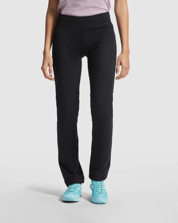 Pantalone sportivo e confortevole, taglio femminile aderente e girovita elastico.