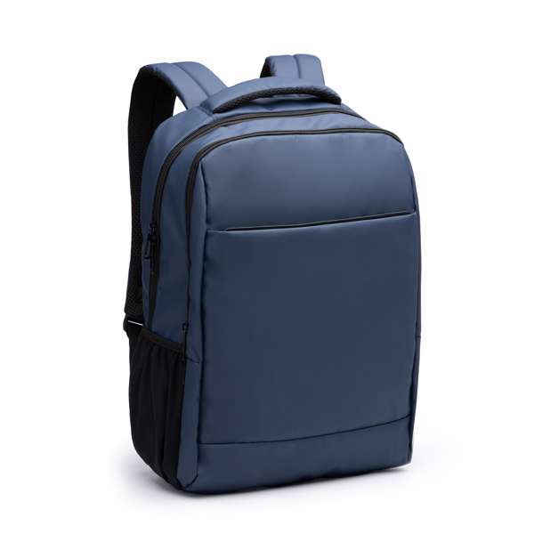 Zaino in pelle PU. Scomparto principale con tasca interna imbottita per computer portatile da 15". Tasca frontale. Schienale e spallacci imbottiti.