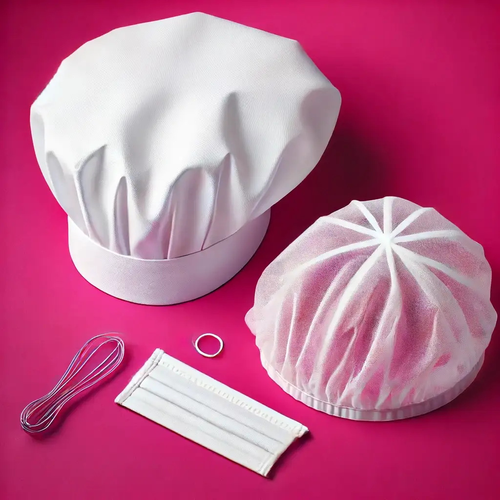 Copricapo con modello migliorato. · Rete per capelli e visiera rigida. · Pieghe sul davanti. · Rete traspirante con elastico adattabile nella parte posteriore.