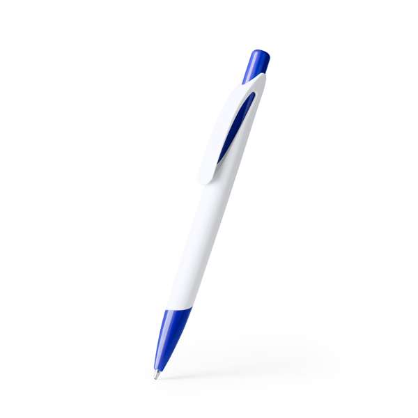 Penna a sfera con pulsante abbinato e punta in finitura bicolore. Inchiostro blu.