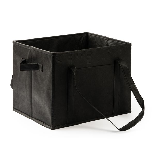 Organizzatore per il bagagliaio dell'auto in resistente tessuto non tessuto. Maniglie di trasporto rinforzate, maniglie laterali e tasca frontale. Base rigida per una migliore vestibilità.