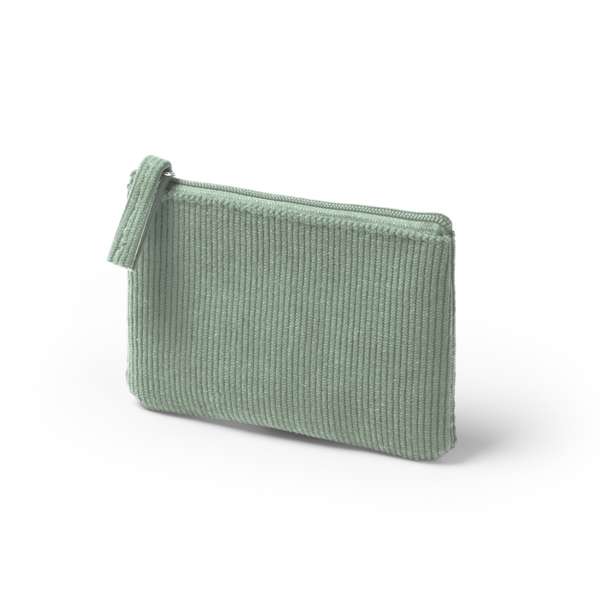 Borsellino realizzato in velluto a coste con zip in tinta.