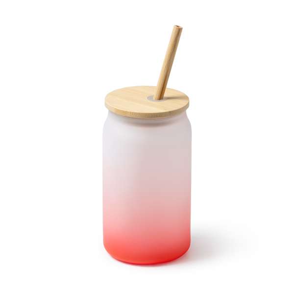 Vetro borosilicato effetto ghiaccio con degradazione del colore. Coperchio e cannuccia in bambù. Capacità 350 ml. Tazza ideale con design a colori sfumati, perfetta per la tua attività.