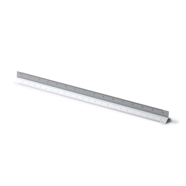 Scala graduata in alluminio dal design triangolare di 30 cm. Scala da 1:20, 1:25, 1:50, 1:75 e 1:100. Un lato piatto, ideale per la marcatura. Confezione in scatola di design.