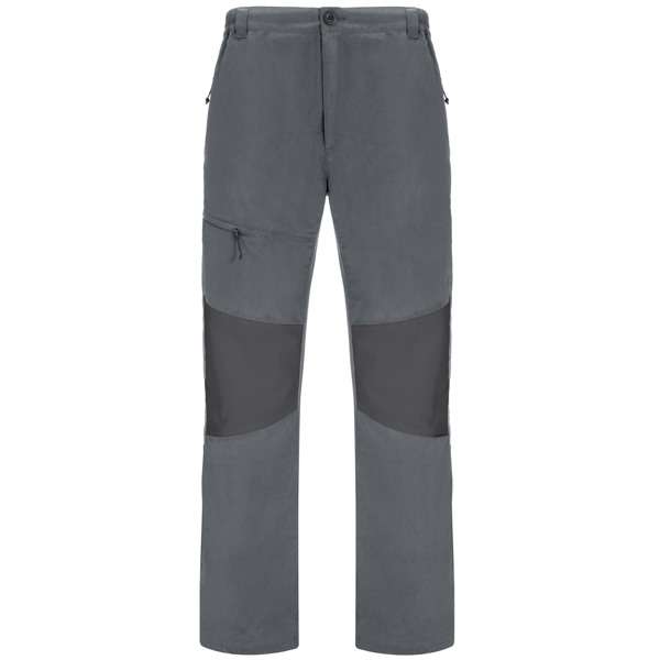 Pantalone da trekking.1. Girovita elastico.2. Tasche frontali con cerniera invertita3. Toppe in contrasto sulle ginocchia, tasca con cerniera invertita sul lato destro.4. Tasca posteriore nel lato destro.