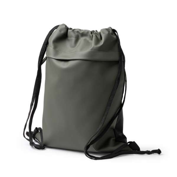 Zaino in corda realizzato in PU e poliestere 600D. Tasca principale e frontale con chiusura a zip.