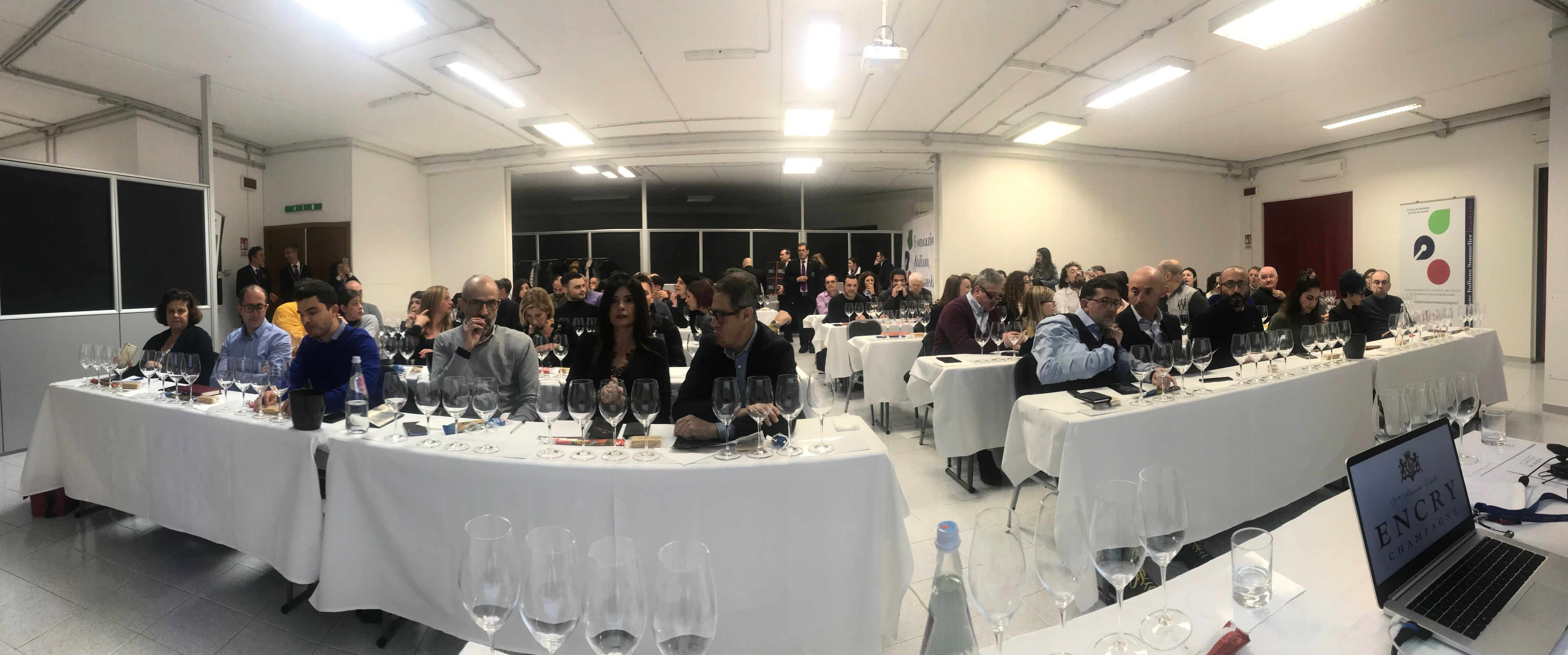 Tour di tre giorni con Master Class e cene di degustazione. Focus sulle caratteristiche dello Champagne e degustazione guidata di quattro etichette della maison Encry presso la sede FIS di Cagliari, con oltre 100 partecipanti.