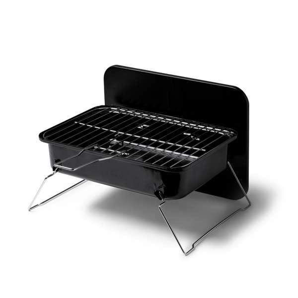 Barbecue a carbone portatile in acciaio inossidabile. Chiudibile con griglia staccabile. Confezione in scatola.