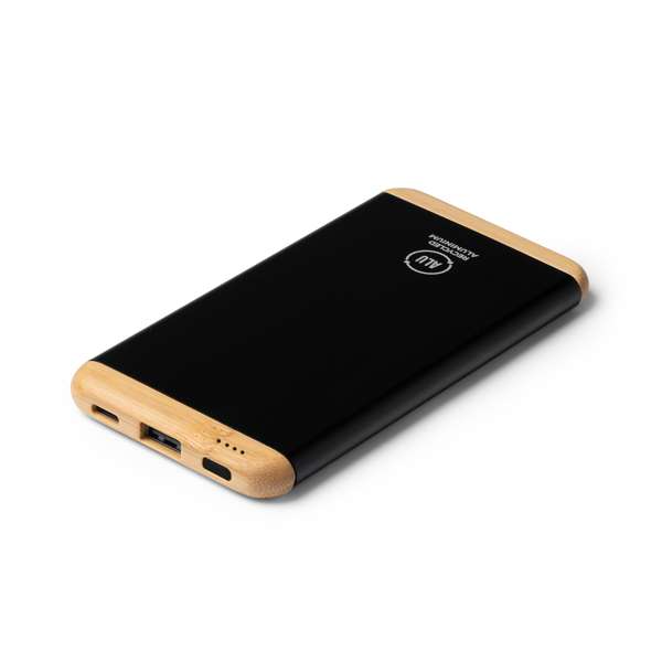 La batteria esterna da 5.000 mAh combina un corpo in alluminio riciclato e bambù, offrendo una soluzione di ricarica sostenibile ed efficiente. È dotata di ingresso e uscita USB e Type-C, con un cavo abbinato incluso. Ideale per mantenere i dispositivi carichi anche in viaggio, viene fornita in una custodia dal design ecologico che ne sottolinea l'impegno per l'ambiente e la moderna funzionalità.