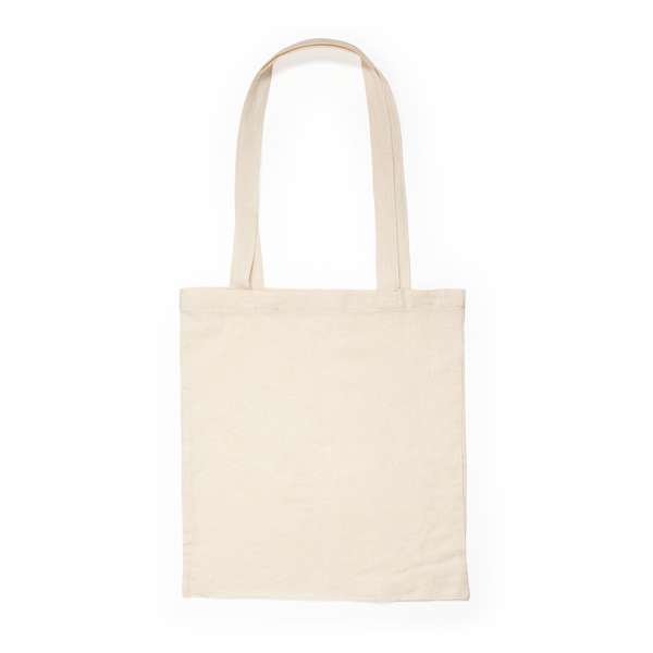 Borsa della spesa 100% di cotone 105gr/m2 cucita. Con pratici manici lunghi rinforzati di 70cm.