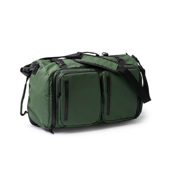 Borsa/zaino multifunzione in PU con poliestere 600D Ripstop. Resistente all'acqua Ampio vano principale con apertura completa. Numerose tasche esterne. Scomparto per calzature. Manico rinforzato. Tutti gli scomparti sono dotati di cerniera impermeabile. Include tracolla imbottita con funzionalità zaino.