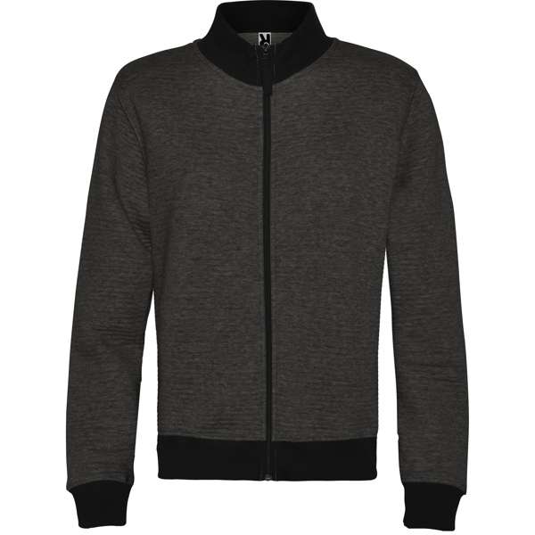 Giacca casual in tessuto ottoman.1.- Cerniera anteriore in contrasto.2.- Collo, polsini e girovita in contrasto a costine 2x1.3.- Copri cuciture rinforzate all'interno del collo.4.- Tasche laterali.