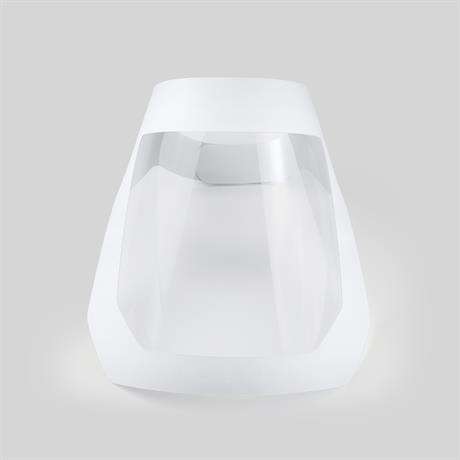 Visiera flessibile e leggera riutilizzabile. Realizzata in cartone laminato bianco e PET. Facile da personalizzare. Chiusura regolabile con velcro nero. Imbottitura in schiuma per una comoda vestibilità sulla fronte. Design anti-spruzzo.
