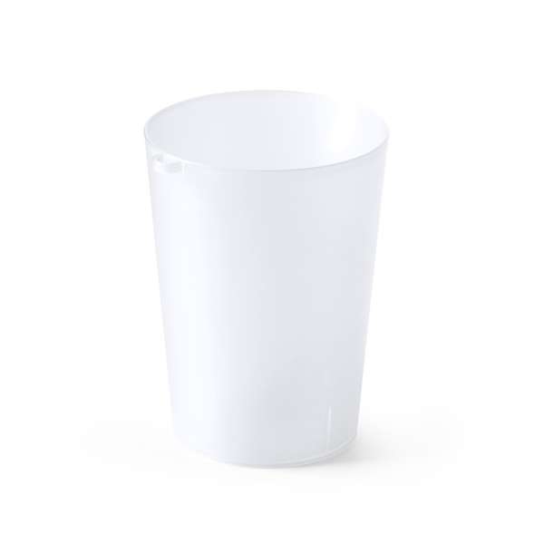 Tazza in PP flessibile riutilizzabile con capacità 500 ml con anello. Finitura traslucida.