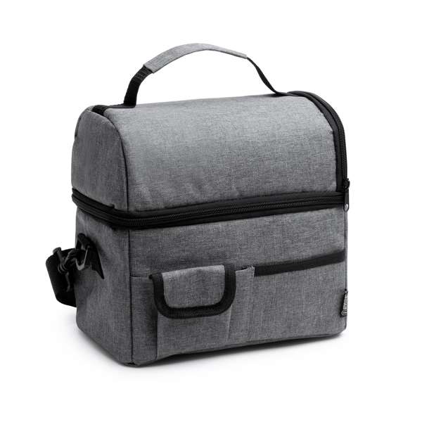 Il frigorifero multiuso realizzato in RPET 600D è la soluzione ideale per mantenere freschi cibi e bevande anche in viaggio. Realizzato in RPET, un materiale riciclato di alta qualità, questo frigorifero dimostra il vostro impegno nei confronti dell'ambiente.Grazie agli scomparti interni isolati, potrete mantenere gli alimenti alla giusta temperatura più a lungo. Se avete bisogno di mantenere le bevande fredde in una giornata calda o di trasportare alimenti freschi, questo frigorifero assicura che tutto rimanga fresco e pronto da gustare.Le pratiche tasche esterne offrono ulteriore spazio per riporre gli oggetti personali, come utensili, tovaglioli o piccoli snack. In questo modo, avrete tutto ciò che vi serve a portata di mano.La tracolla imbottita regolabile con moschettone offre comfort e versatilità nel trasporto del frigorifero. Potete portarlo comodamente in spalla o appenderlo allo zaino o alla borsa, a seconda delle vostre esigenze. Questo frigorifero multiuso è ideale da portare con sé durante picnic, escursioni, viaggi o semplicemente per la vita di tutti i giorni. Il suo design funzionale, unito all'uso di RPET, lo rende un'opzione ecologica e durevole.Se avete bisogno di mantenere freschi gli alimenti durante una giornata di avventure o semplicemente di portare il pranzo al lavoro, questo frigorifero multiuso vi offre una soluzione pratica ed ecologica.