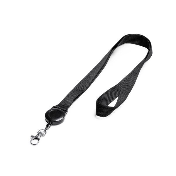 Lanyard in poliestere con moschettone, fibbia staccabile e sgancio di sicurezza.