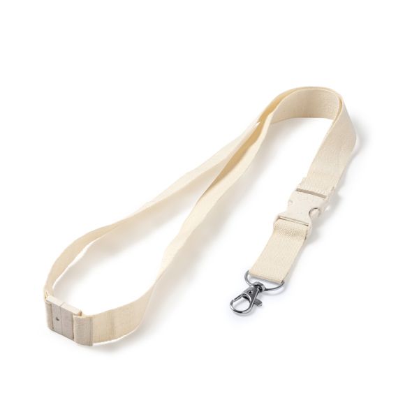 Cordino in cotone con moschettone, fibbia e chiusura di sicurezza.