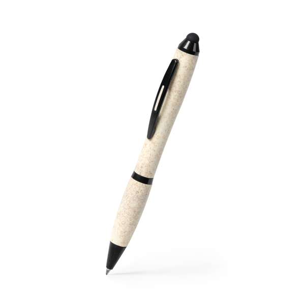 Penna a sfera con meccanismo a scatto in fibra di grano e PP con finiture in nero. Inchiostro blu.