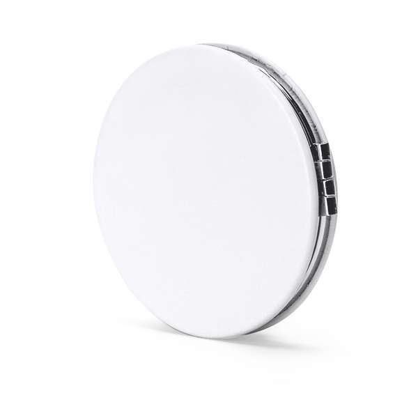 Pratico specchio tascabile pieghevole composto da due specchi, uno normale e uno d'ingrandimento.