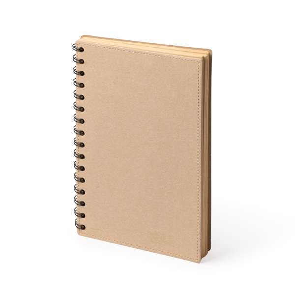Quaderno A5 con copertina rigida in cartone riciclato e doppia spirale. L'interno è in carta riciclata FSC e contiene 80 pagine a righe. Ideale per chi cerca un'opzione ecologica senza rinunciare a qualità e funzionalità.