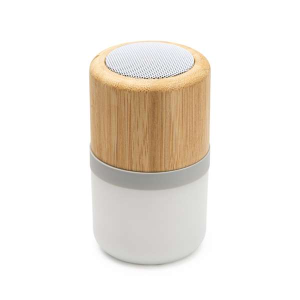 Fantastica cassa wireless con corpo in bambù e luce LED multicolore con 4 modalità. 3W di potenza e batteria ricaricabile. Cavo di ricarica incluso.