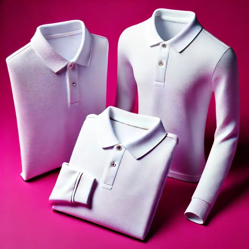 Polo manica lunga, colletto e polsini in costina, polsino in costina 1x1 con elastane e copri cuciture rinforzate sul colletto. Chiusura 3 bottoni. Spacchi laterali.