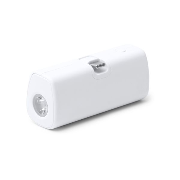 Power bank in alluminio riciclato. Capacità di 4.000 mAh. Indicatore LED. Uscita DC5V/2,1A. Cavo di tipo C incluso. Confezione in scatola di design ecologico.