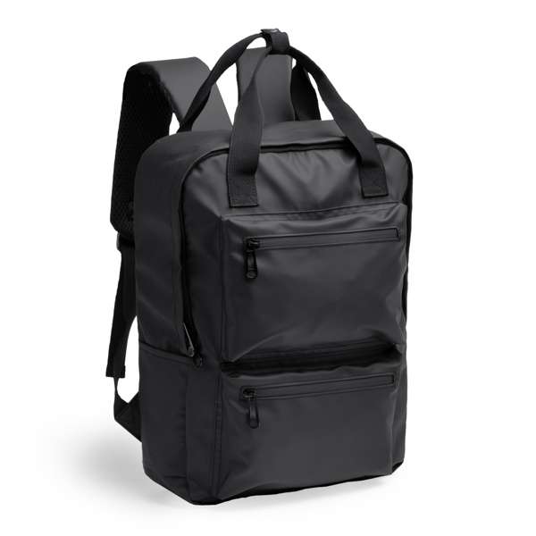 Zaino in pelle PU con manici imbottiti per il massimo comfort. È dotato di una doppia tasca frontale con cerniere resistenti all'acqua e di uno spazioso scomparto principale che comprende una tasca interna imbottita per un computer portatile da 16 pollici. Dispone inoltre di una maniglia aggiuntiva per il trasporto e offre una capacità di 14 litri, ideale per chi cerca funzionalità e stile nei propri accessori quotidiani.