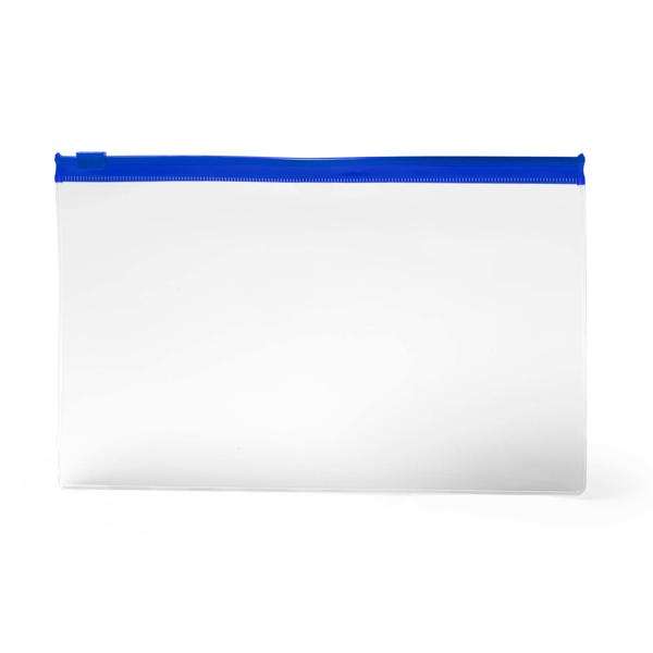 Custodia multiuso in PVC. Corpo trasparente con chiusura colorata. Ideale per riporre tutti i tipi di mascherine.