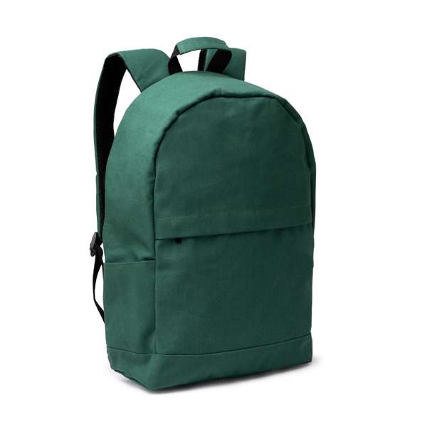 Zaino antifurto in cotone riciclato. Scomparto principale con tasca interna per laptop da 15". Tasca antifurto situata sul retro. Schienale e manici imbottiti. Cinghia per il trolley. Capacità: 20L.