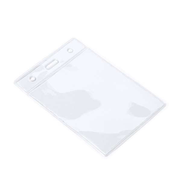 Portabadge in PVC trasparente con design verticale.