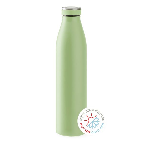 Bottiglia termica in acciaio 304 con isolamento in rame a doppio strato e sottovuoto. Capacità 750 ml. Disponibile in un'ampia gamma di colori vivaci.