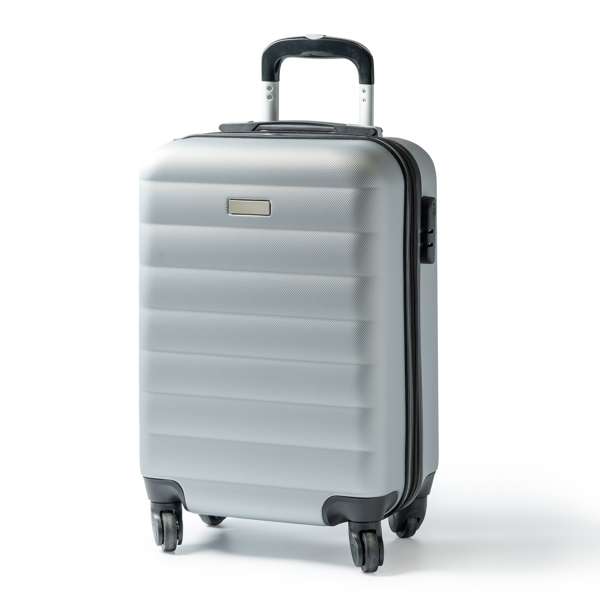Valigia trolley rigida in ABS resistente. Due scomparti principali e tasca interna a rete. Blocco di sicurezza incorporato incluso.