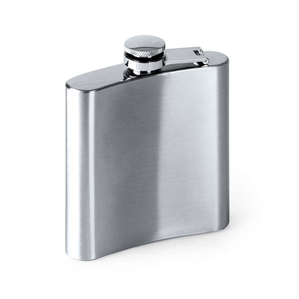 Fiaschetta in acciaio inox con chiusura di sicurezza antigocciolamento. Capacità 175 ml.