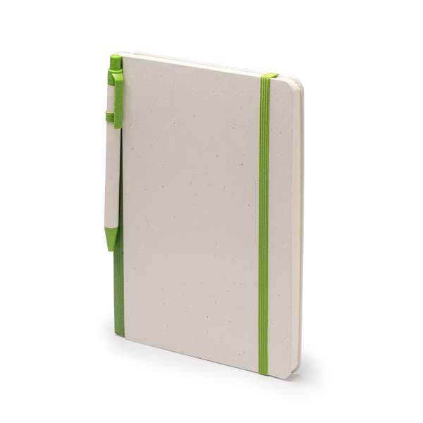 Blocco note A5 realizzato con cartoni del latte riciclati, con un approccio ecologico e sostenibile. La copertina rigida è dotata di un elastico e di un segnapagina, entrambi in tinta con la penna a inchiostro blu a pulsante inclusa. Contiene 80 pagine semplici che offrono ampio spazio per appunti e disegni. Ideale per l'uso quotidiano, unisce funzionalità, stile e responsabilità ambientale.