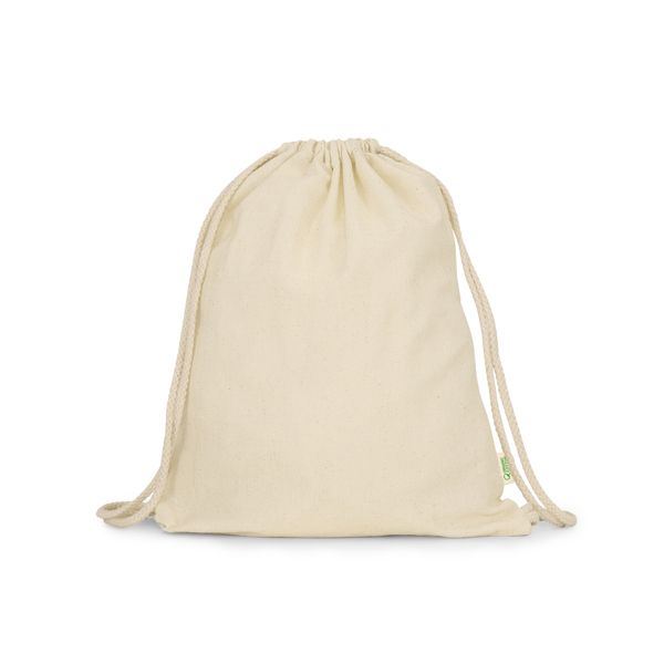 Borsa con coulisse in 100% cotone equosolidale (180 g/m²), con lacci abbinati.